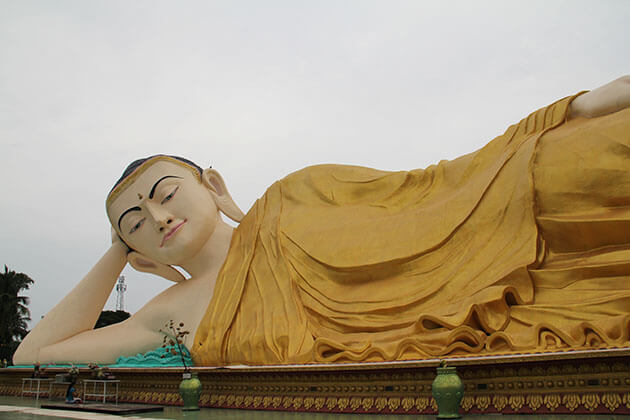 The reclining Buddha (Chauk-Htat-Gyi Buddha Temple) is a large image of Buddha in Yangon that spans a distance of 16 meters. Locals come here to make offerings and worship. When you visit, you will see different temples corresponding to the days of the astrological week. People make offerings to the temple on the day of their birth.
